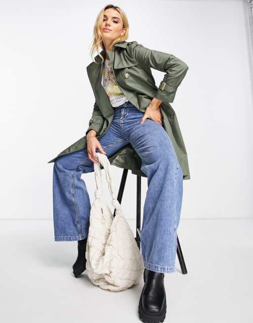 Mango green trench cheap coat
